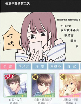 简介:漫画《恋与制作人脑洞合集是一本充满偶像恋爱气氛的漫画,免费漫画为您提供漫画恋与制作人脑洞合集在线阅读。漫画恋与制作人脑洞合集简述:女主对游戏里的人气偶像恋人的感情线,女主的理想目标本是霸道总裁李泽言,但奈何帅哥又多又不停被攻略。帅哥太多要不我都收了?