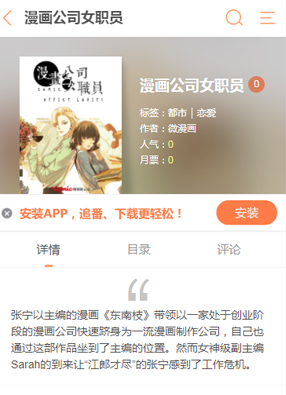 简介: 漫画《公司女职员》讲述了一家创业团队,他们的主旨是将现在的刚刚创立的漫画公司能够快速发展,成为国际的一线漫画制作公司。《东南枝》是主编张宁成功编绘的漫画!张宁是根据这部漫画的成功的坐上了主编的位置。但是没想到突然空降了一个美女副主编,让张宁感受到了强所未有的工作危机!