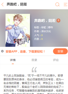 简介:漫画《奔跑吧,阴差》讲述了平凡的上班族殷柴,“死”于一场不平凡的意外。若想要回到原来的身体,他必须接受阎王的考验,成为一名合格的阴差,替阎王行走人间、声张正义!在黑白无常的帮助下,殷柴这个老好人陆陆续续的完成了一系列任务,可随着他接触到的真相越来越多,他渐渐发现,原来他的“死”并非是一场意外,而他的体内还有“另一个自己”!