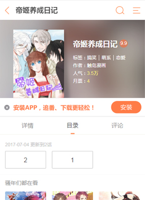 简介:《帝姬养成日记》漫画讲诉了皇长子失踪、国库被盗,不想担当太子又害怕联姻的废柴帝姬毅然踏上了找寻真相的路。万万没想到在旅途中破事儿不断,或喜或忧,竟还慢慢闻到了阴谋的味道…