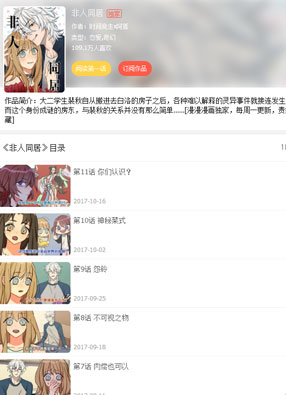 简介: 《非人》漫画简述:大二学生裴秋能够看到别人看不到的东西,某次,她在网上看到了一条格外便宜的租房信息,便拖着行李箱去到了租下的房子,却没想,是和一个叫白洛的男人合租,而且,自从她搬进去白洛的房子之后,各种难以解释的灵异事件就接连发生,而且,这个身份成谜的房东,好像与裴秋的关系并没有那么简单…